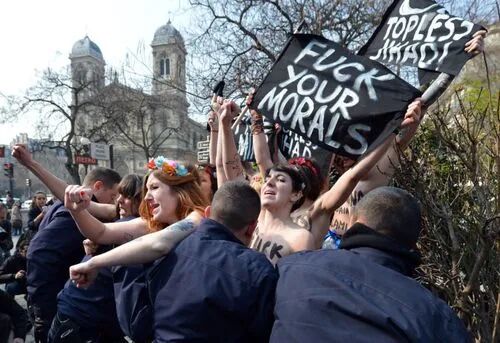 这几名裸女属于乌克兰女权组织费曼。该组织成员,各个都是绝顶美女,不仅有姣好面容,还有魔鬼身材。但是奇怪的是,这样一个女性组织,其背后的创建者竟然是一名男子,名为维克多·斯瓦扬斯基。斯瓦扬斯基最初组建费曼,只是为了满足自己的私欲,所以组织里的成员都是由他亲自挑选。而他也很会运用心理学,屡次让美女们以裸露身体的方式,进行示威,博得了不少眼球。2003年4月8日,该组织盯上了普京。当时,德国正在举行工业博览会,聚集了各国精英,普京也在其中。正当各国精英侃侃而谈时,一名裸女迅速脱掉上衣,露出写满女权口号的上半身,扑向普京。