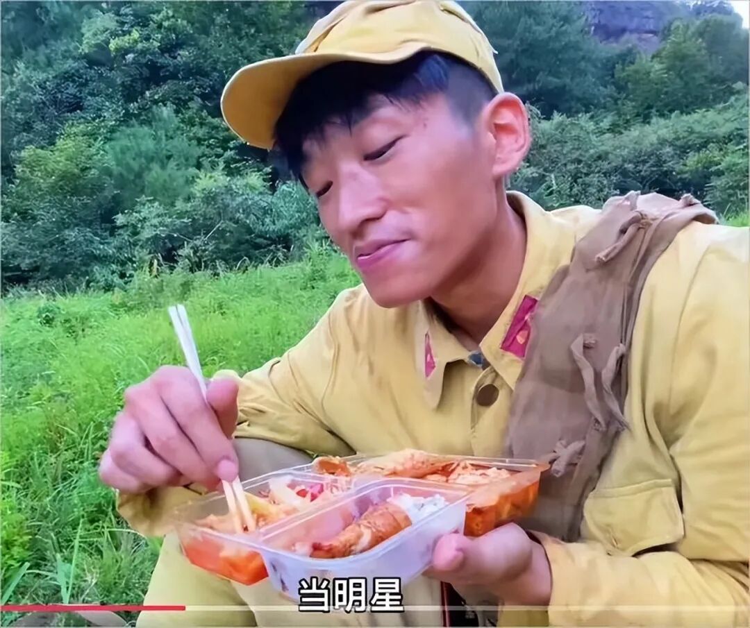 记者采访一个正在吃盒饭的年轻的男群演,问他为什么不换一份外卖员或销售的工作,起码有底薪和固定收入。男孩说: