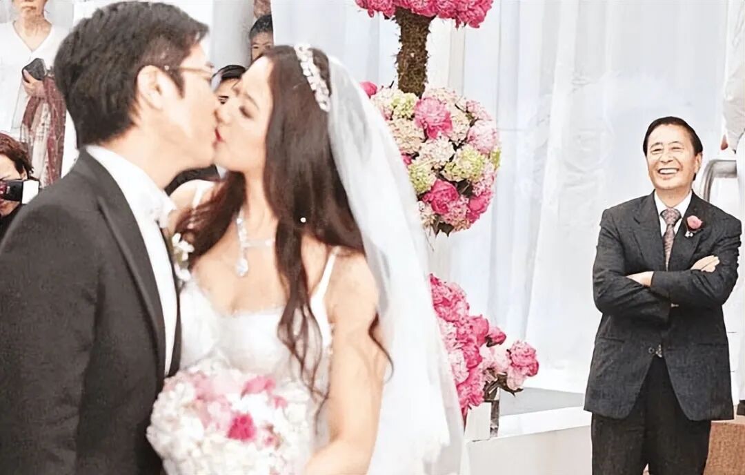 当徐子淇和李家诚二人亲吻时,李兆基就站在不远处,双手抱在胸前,看着小两口亲热,笑得合不拢嘴,仿佛看到了李家香火旺盛的样子。