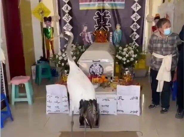 家属们更是感动得不知如何是好,拿出玉米和精心挑选的肉类招待“贵客”,这丹顶鹤也不客气,在隔壁客房里待了一下午,接近晚饭时才悠然离去。 正当附近的人争相议论此事之时,有关“仙鹤吊唁”的视频却在网上引起了轩然大波。 原来,有细心的网友发现,丹顶鹤的脚上带了环,顿时怒了。 如果不是受到人类饲养控制,它怎么会如此听话?定是有人控制了丹顶鹤参与丧葬服务! 有人怒评为丹顶鹤“讨薪”:你们给它3000了吗?让它参加殡葬服务? 许多人闻言更是愤懑不平,纷纷要求当地管理部门给个说法。 不怪网友生气,丹顶鹤作为仙鹤的原型,曾被无情伤害,一度面临灭绝的境遇。