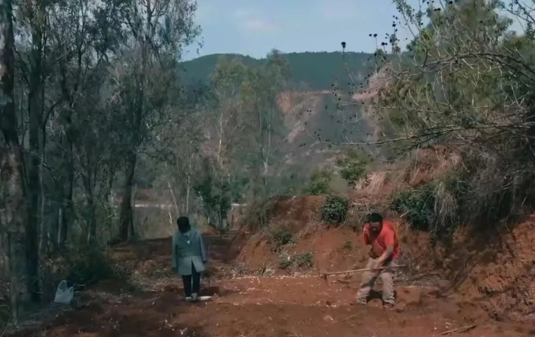 春种时,他在前头刨好坑洞,她随后撒下菜种。待到秋收,她便在前面背着背篓,他在后头摘下果实。