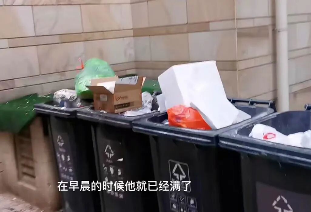 第一天尝试时,她整理出了五大包过期方便面。当她抱着过期食物和大量快递包装下楼时,发现才一大早,垃圾桶里就堆满了垃圾,她立马产生了罪恶感。