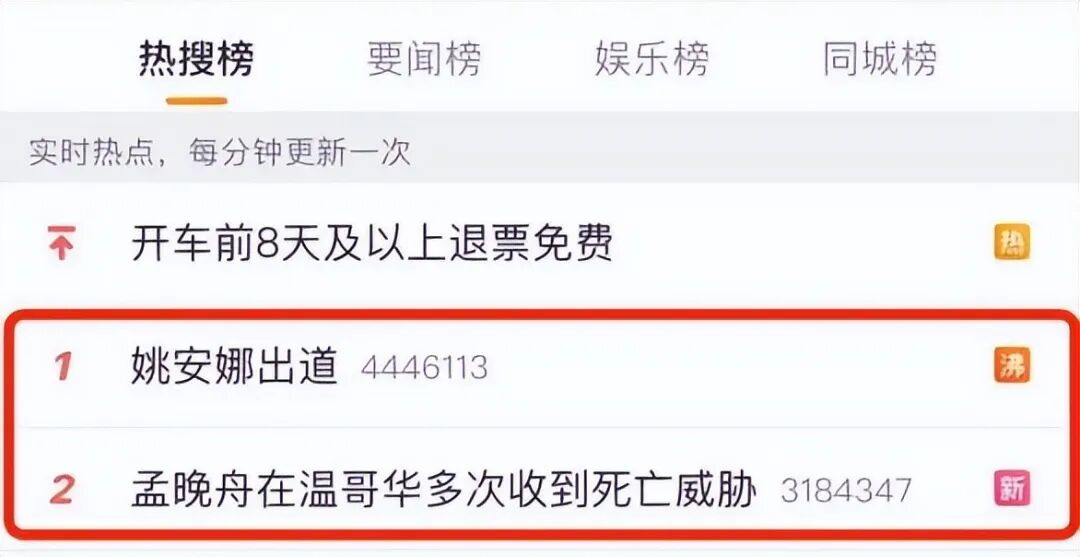 当天这条词条瞬间冲上微博热搜第一,但是令人讽刺的是,“姚安娜出道”的热搜下面,就是“孟晚舟在温哥华多次收到死亡威胁”。