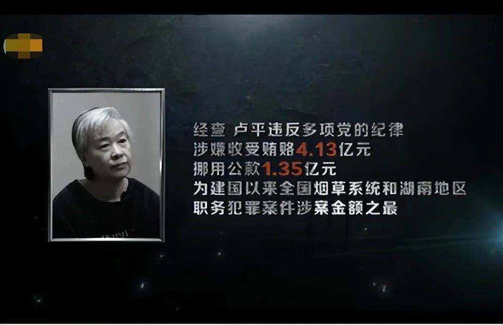 湖南中烟女掌门人卢平受贿4.13亿元、挪用公款1.35亿元被调查,创下了建国以来全国烟草系统涉案金额之最!