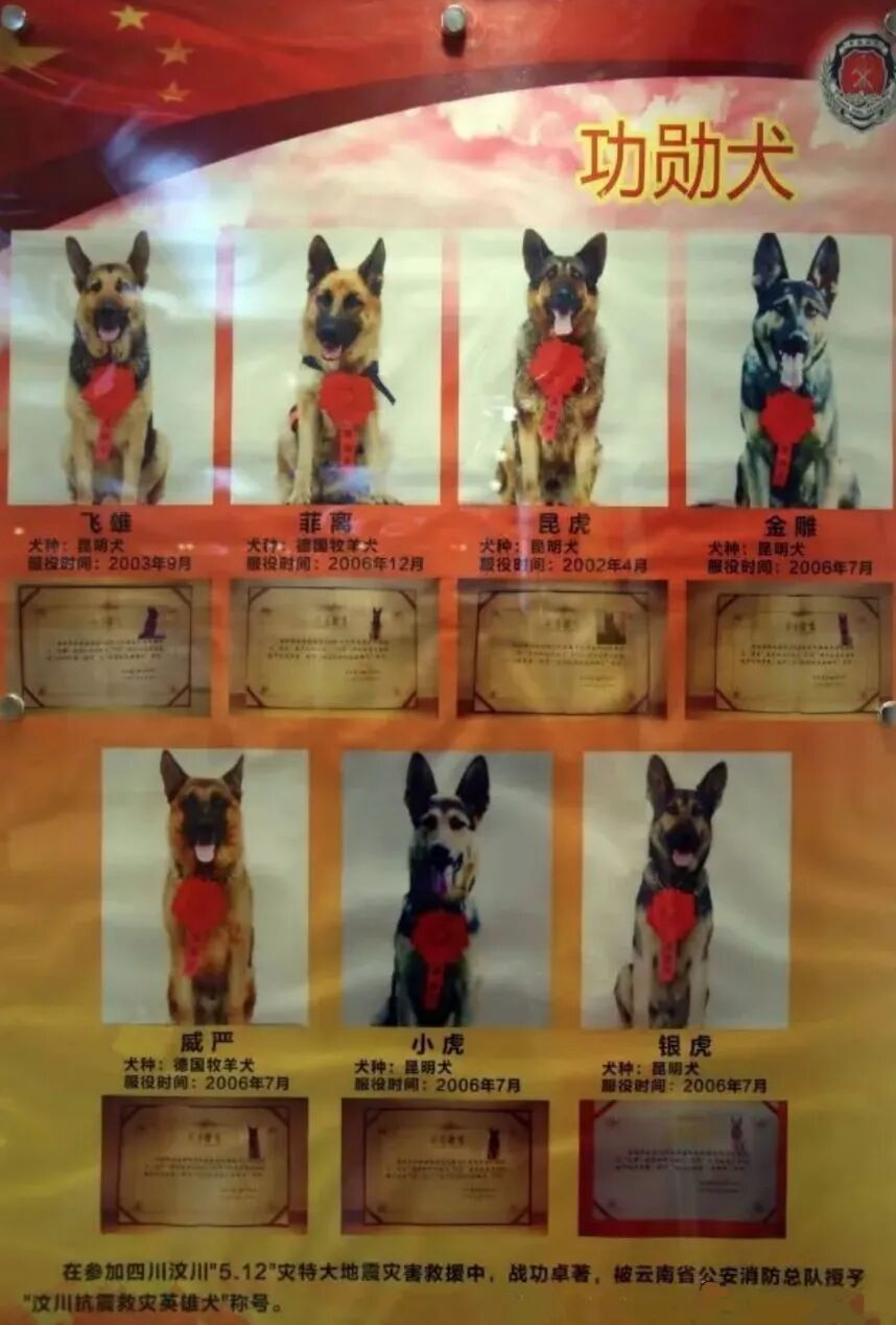 当年,云南消防中队派出7只帅小伙参加汶川地震救援,其它的搜救犬已经陆续离世,如今只剩下银虎一个了。