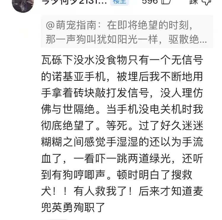 靠着这份敬业,它在十多天的搜救中,成功挽救了13条生命,这绝对是它一生中的高光时刻!