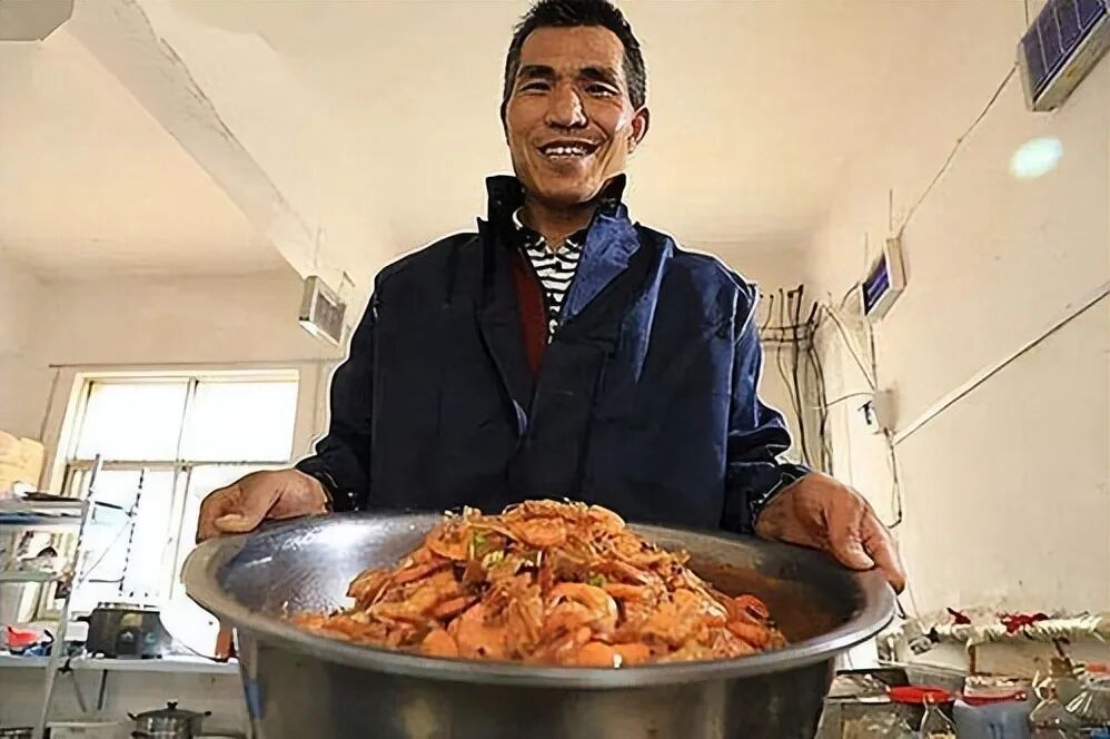 学校厨师受伤了,他二话不说,系上围裙,熟练地给孩子们做起拿手的油焖大虾。