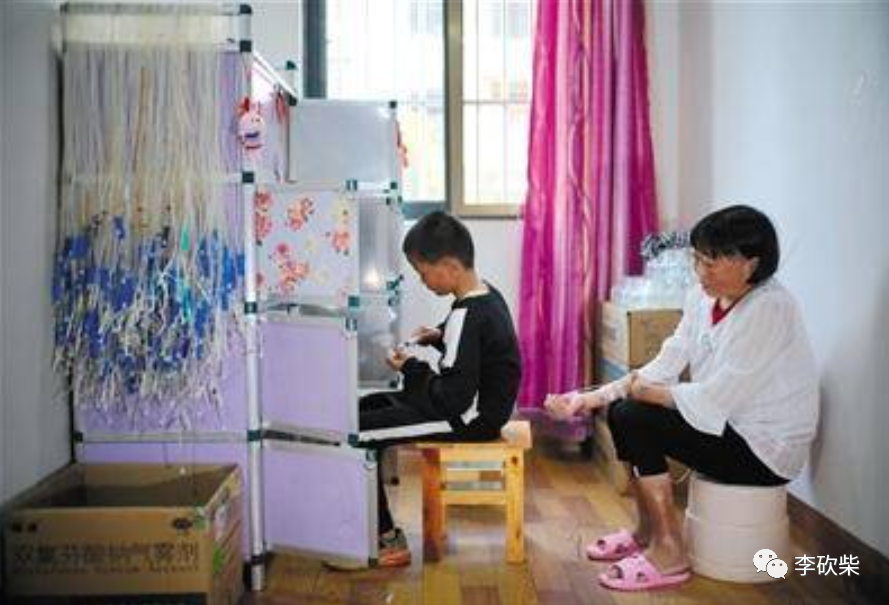 每天早上5点钟,小宗松就早早地起床,给妈妈输液、给继父拿药、再烧好热水,然后背起书包去学校上课。