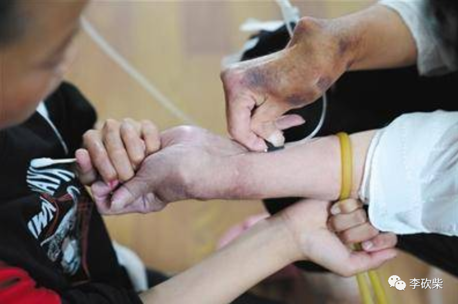 但随着痛风病症的日渐严重,张发翠变形的手已经完全拿不住针头,她只能教当时只有6岁的儿子,来完成这些对他来说很难的动作。