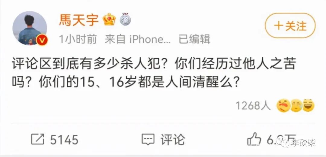 今天上午,同样自幼失去父母照拂的演员马天宇发文,怒斥网暴者: