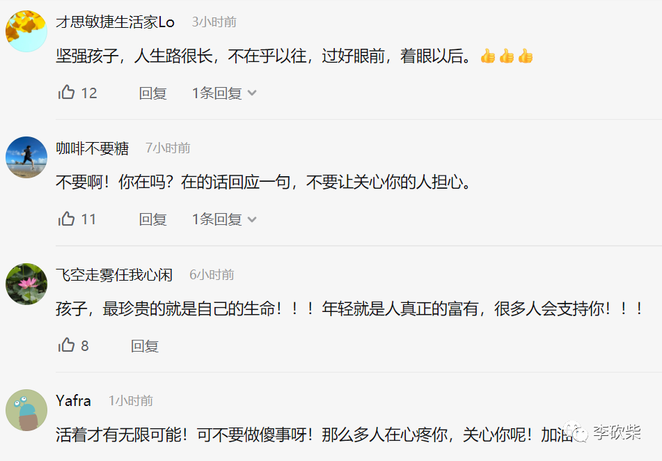 遗书刚发出,无数网友在他的遗书下方留言,试图将刘学州的理智唤醒: