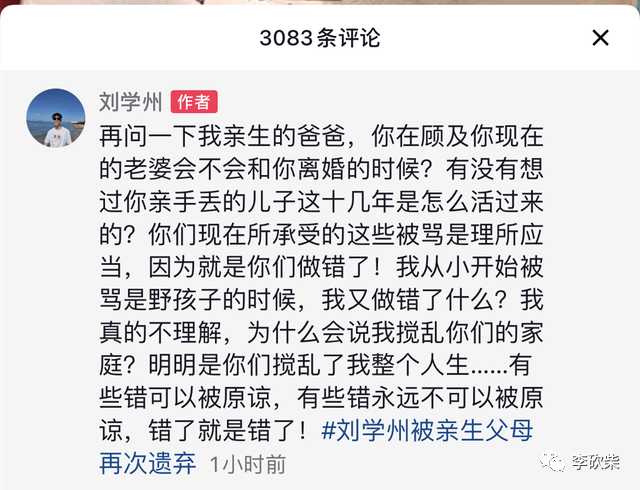 有理智的网友道出了刘学州无尽的惋惜,以及对其父母的质问,见者落泪: