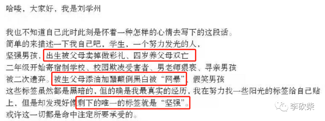 所以他们才会把刘学州血淋淋的现实生活,当成是他精心打造,用来博网友同情的所谓“人设”。
