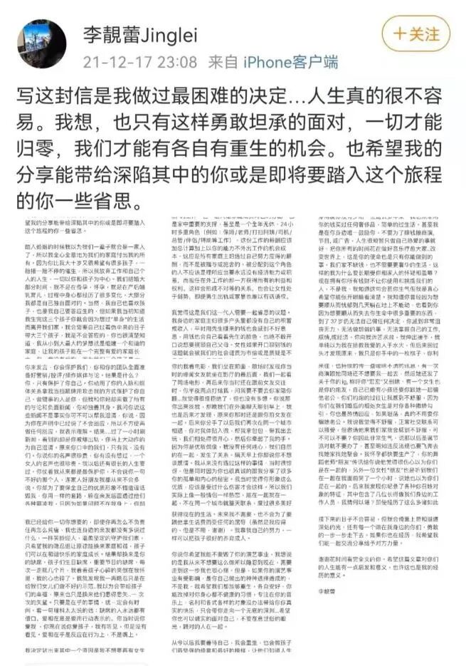 看完微博给人的整体感觉,李靓蕾有理有据、有情有义,更可贵的是还有很强的社会责任感,对于男方爱得深沉但锤得有力。