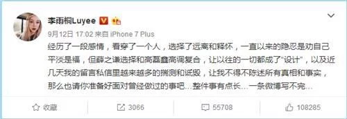 但最近,李雨桐看到薛与高磊鑫高调宣布复婚,恍然大悟发现自己被骗了,才决定出来爆料。