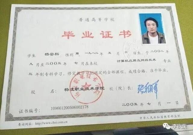 2005年,大专毕业的杨登科去人事局报道,工作人员斩钉截铁地说:“杨登科已经参加工作了,你是假的杨登科。
