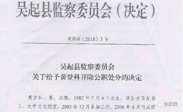 为此,吴起县纪委以黄登科学历造假行为为由,开除黄登科党籍、公职处分。