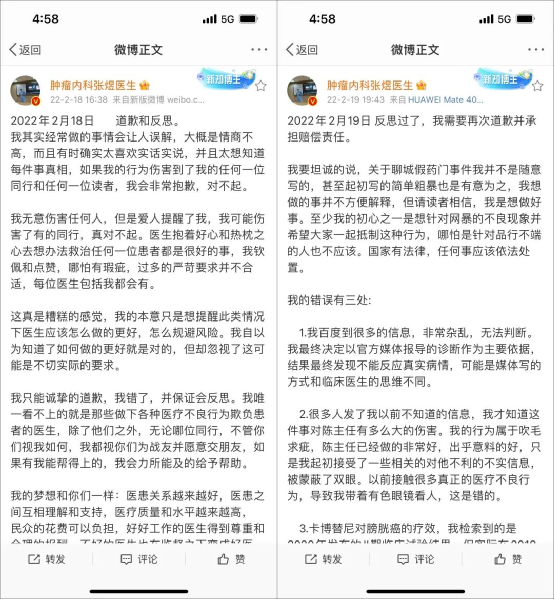 紧接着,张煜删除多篇“聊城抗癌假药案”的内容,连续两次发文道歉,还说要赔偿陈宗祥医生3万元精神损失费。