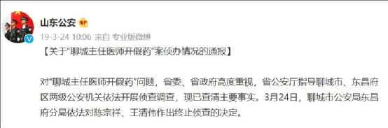 2019年2月,山东聊城一名医生开具抗癌的药物,被鉴定为假药,引起社会关注。