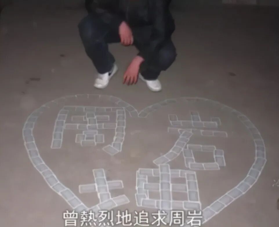 陶汝坤还曾用扑克牌摆出一个爱心,还摆出了“周岩坤”这三个字。
