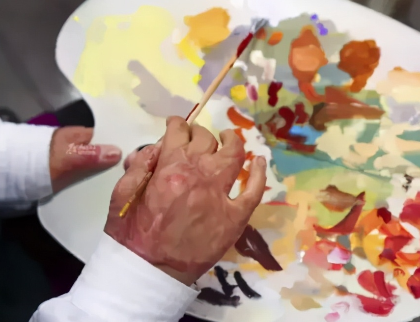 第一次画画时,周岩的手拿不稳画笔,经常将画笔抖落在地,笔都拿不好,更别谈画出一条直线了,她感到十分挫败。