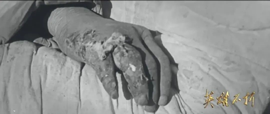 身着单衣的战士们大面积冻伤冻病,冻坏脚的最多,先麻后发紫发黑,就冻坏了,有的战士脚趾头冻掉,有的耳朵冻肿,不停地淌着血水。