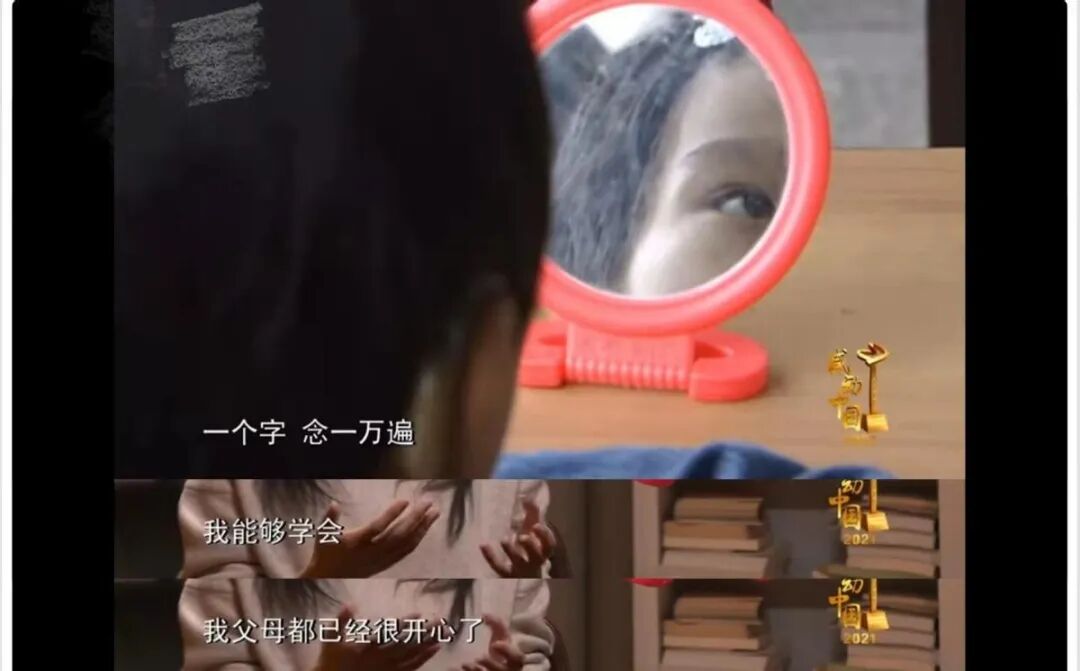 为了让女儿学会说话,两人一有空就在家里跟女儿一起对着镜子,一个字一个字地教。有些字和句子,甚至重复上万次,只为了孩子以后能够像正常人一样生活。