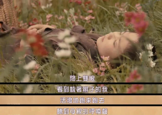 她说:“闭上双眼/看到梳着小辫的自己/活泼地跑来跑去/听到母亲的呼唤声/看到天空飘过的白云/和一望无际的油菜花田。”