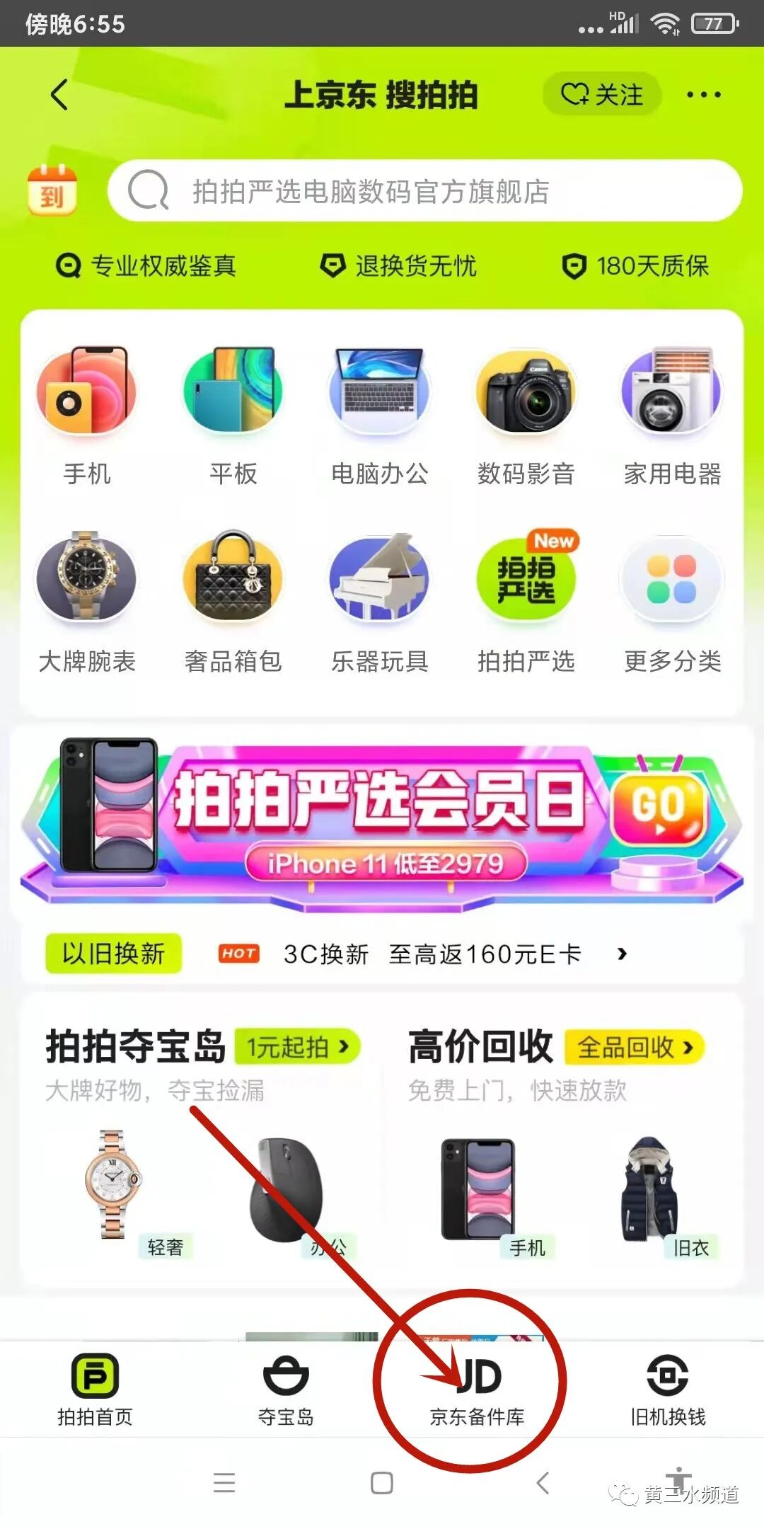 进入拍拍二手频道后,点击京东备件库,就可以看到京东自营的全部二手产品了。