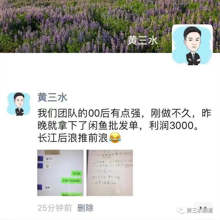 昨晚,我们团队里面刚来一个月不到的00后小伙伴,给我发了条信息,他成功拿下了一个闲鱼批发单,利润3000到手,走的是微信。
