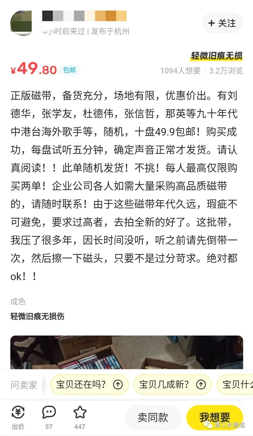 现在这种二手老磁带已经成为小众类商品,客户人群基本都是上了年纪的,只要你卖的磁带刚好是他需要的,那就有足够的溢价空间。