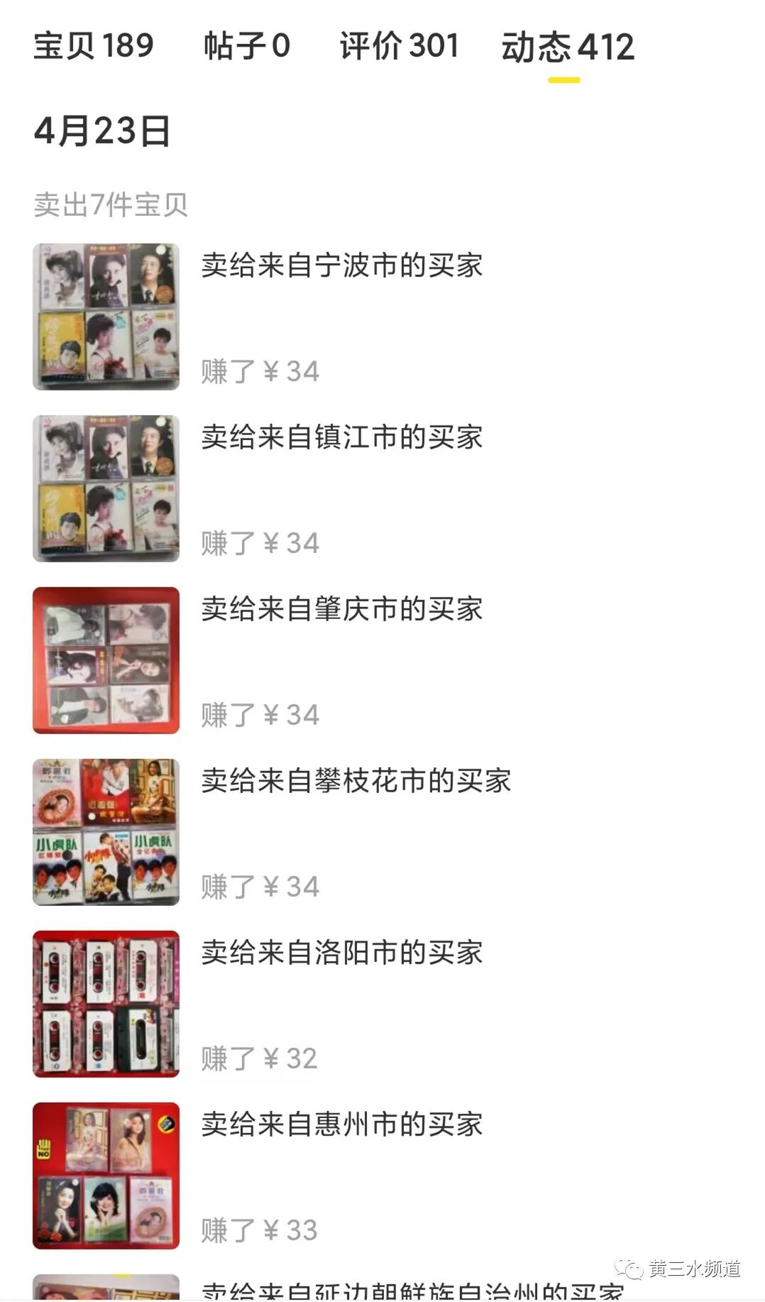 我大致看了一下,在卖这种二手磁带的玩家,卖得好的,利润都不错。