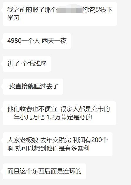 昨天跟她聊天,问她收徒的收费,她说学费3000。