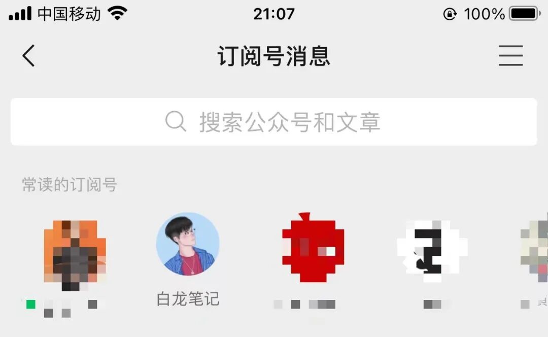 什么是常读用户呢?就是你打开订阅号栏目,最顶上会显示一行公众号。