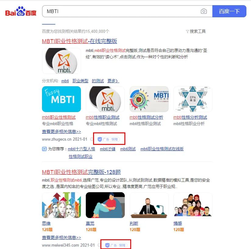 4、B站、某管、某歌搜索“你的人格类型 职业(中文或英文)”