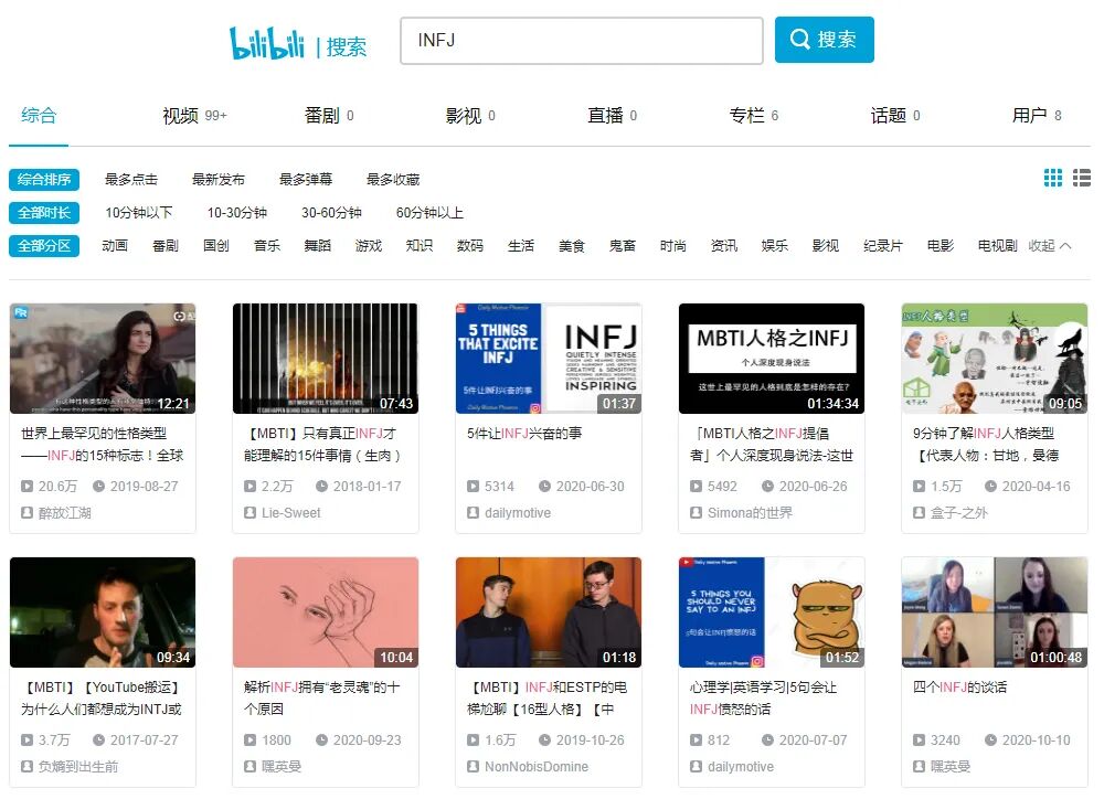 比如B站搜“INFJ”