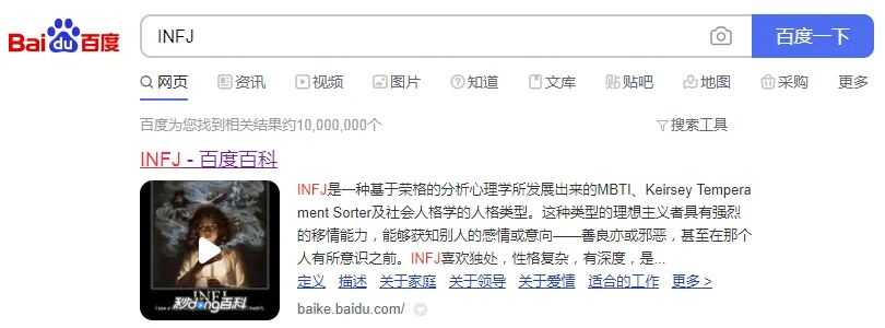 比如我是INFJ,搜索INFJ,最前面就是百度百科。