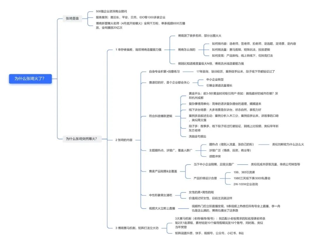 比如博商的赛马机制,旗下签了很多讲师,每天铺量发布,爆火一个讲师是大概率事件。