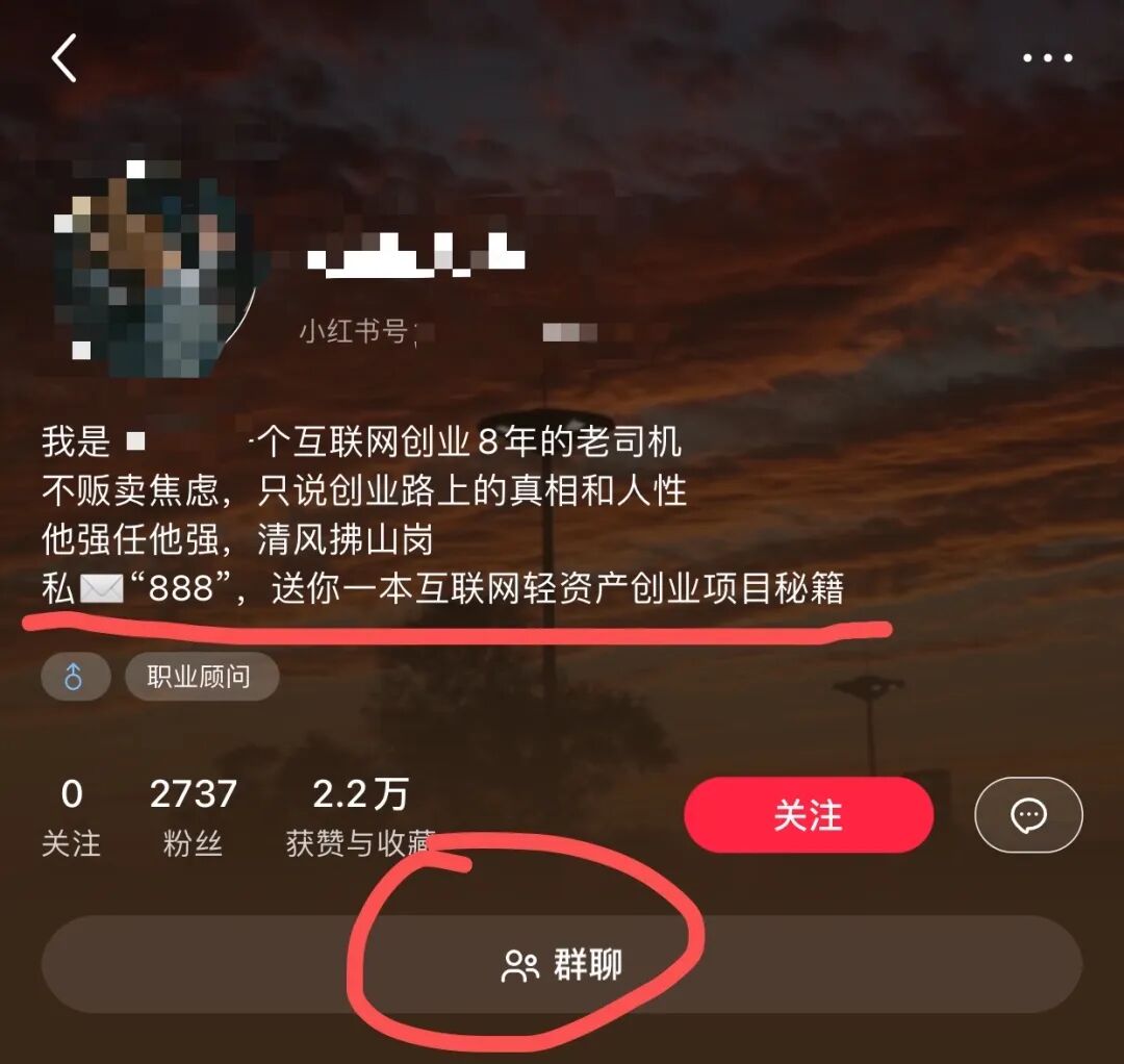 现在比较稳的方法,是建立小红书群,自己小号进群,发引流信息。