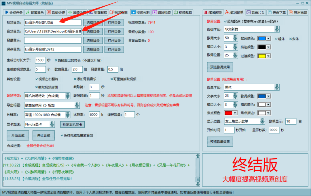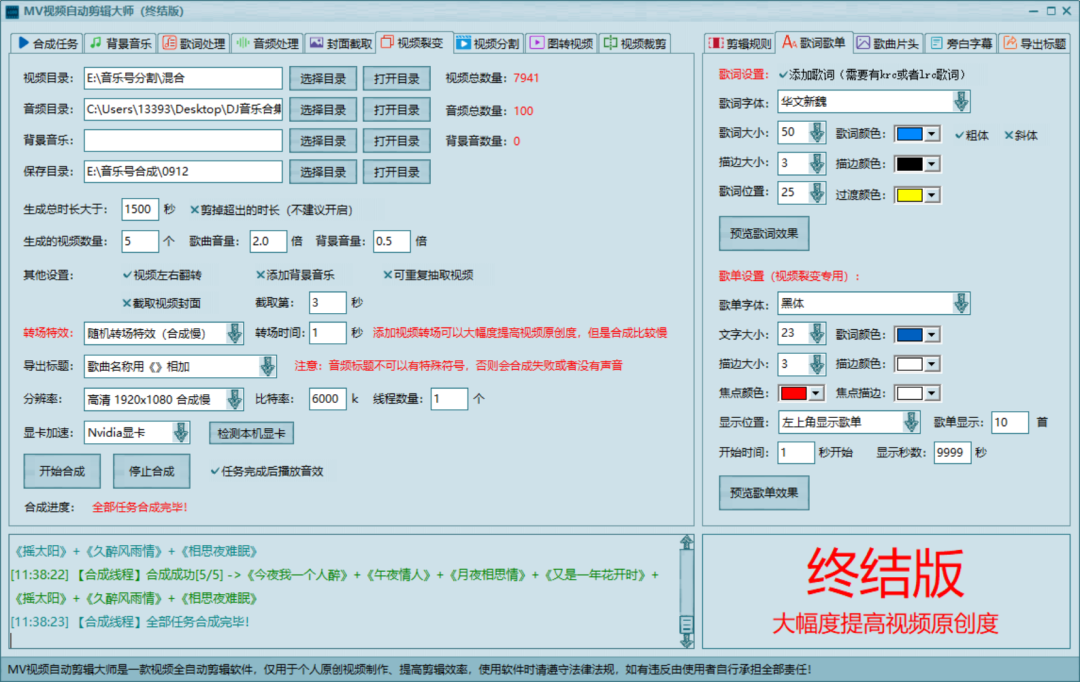 软件只是解决批量生成的问题,更多的还在于其他因素,比如选歌、视频素材等等。