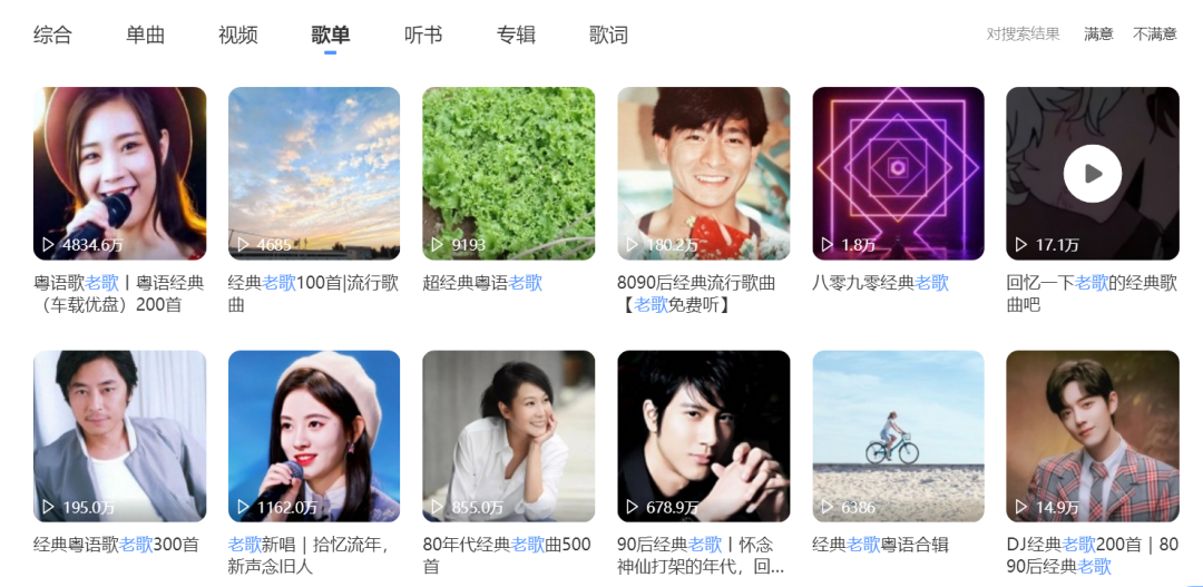 相同的封面,歌单和标题不同,点击率也会有很大差别。