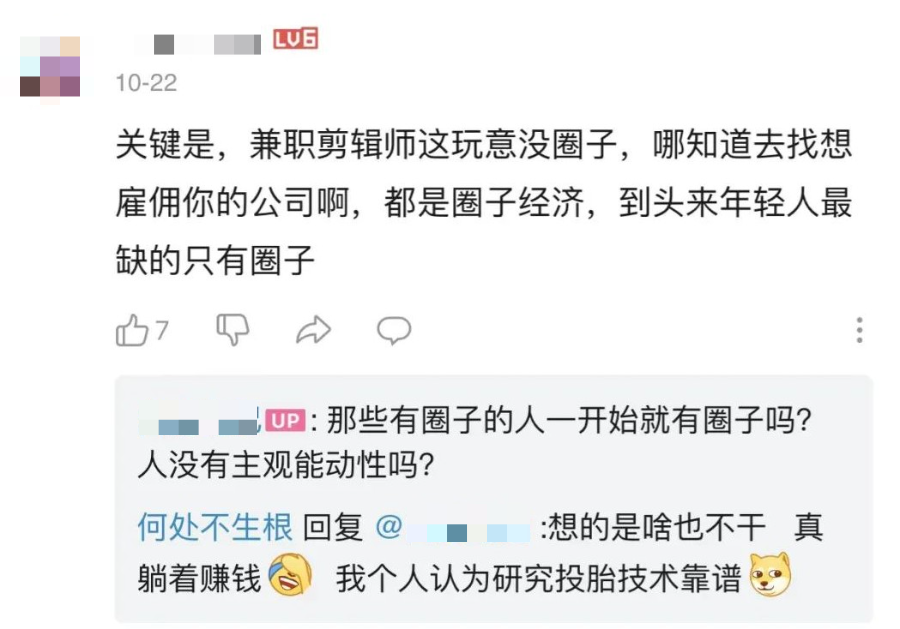 我回怼他:那些有圈子的人一开始有圈子吗,人没有主观能动性吗?