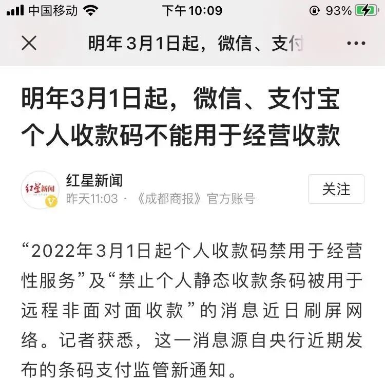 明年3月1日,个人收款码将不得用于商业经营使用。