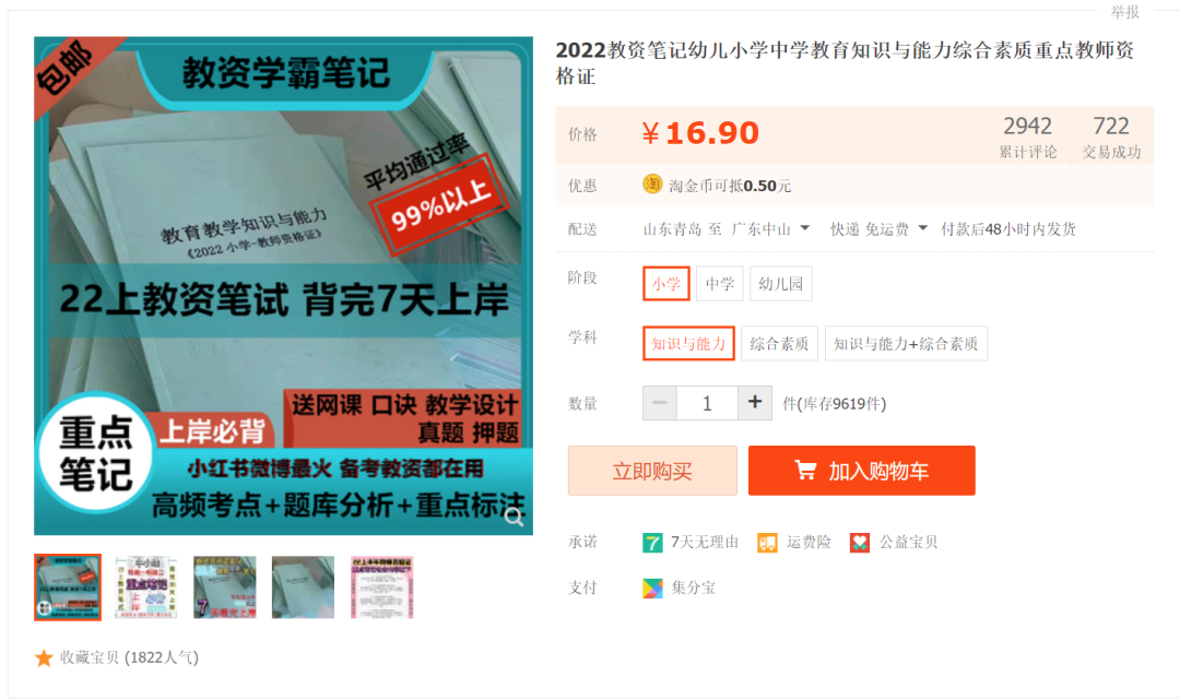 那么实体书资料从哪来呢,凭借我还凑合的搜索能力,我找到了一家专卖教资实体书的淘宝店。