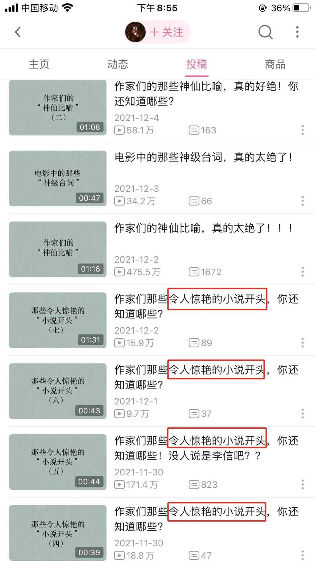 看看同行火的选题,比如“那些经典的名著开头”,是别人验证过受欢迎了,自己可以根据这个选题,再做一遍。