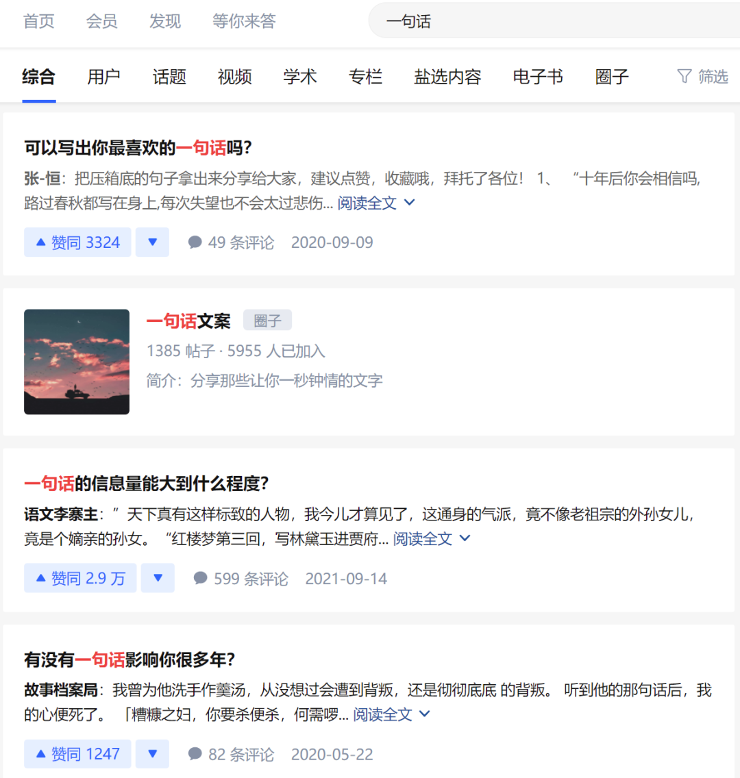 知乎上搜:名句、名言、句子、语录、文学名句、经典开头.....