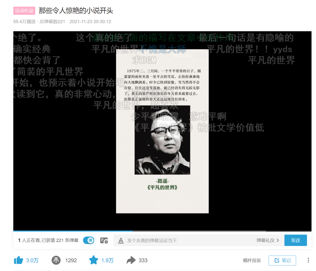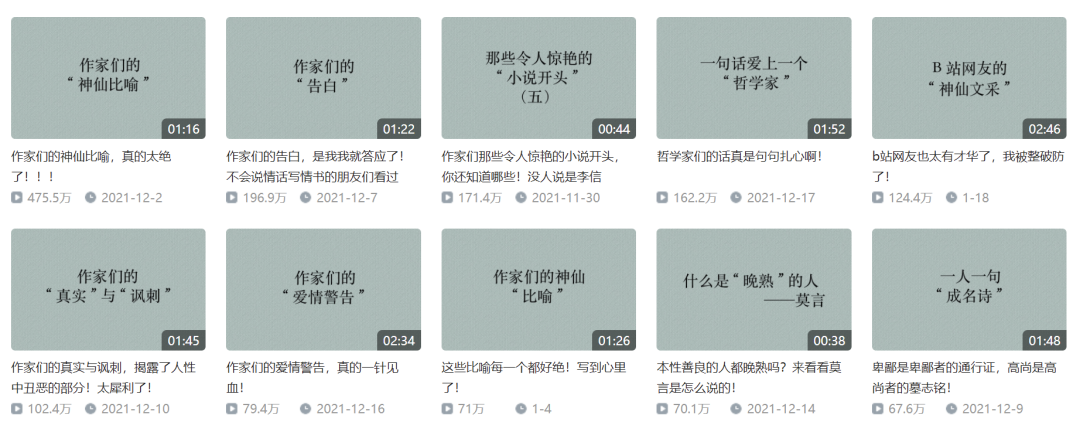 这是B站一个专做文学名句的账号,2个月总共发了51个视频,获得41万粉丝,总播放量2358万。
