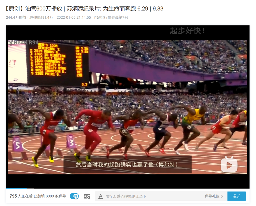 前些天看到了苏炳添的一个纪录片,非常震撼和激励,有兴趣可以看看。