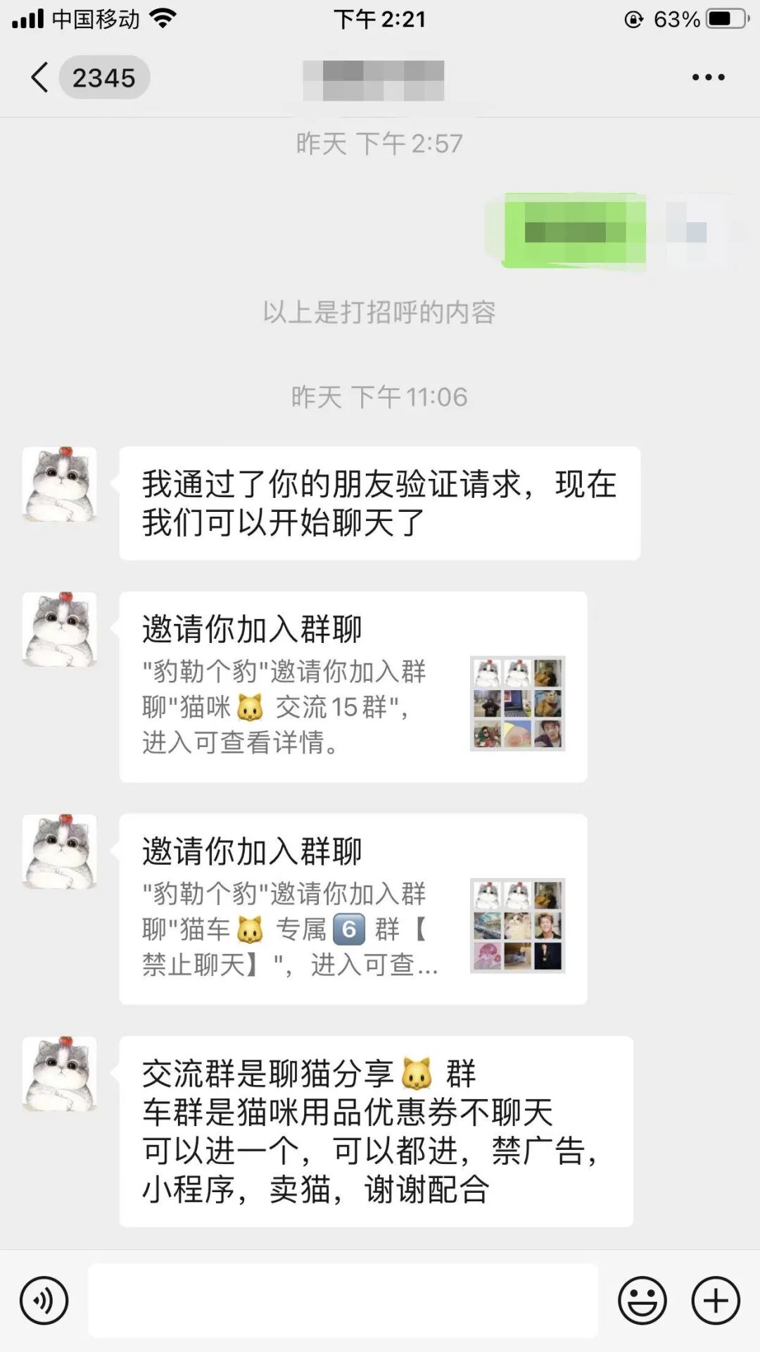 他每天微信能加10来个猫友,一个月积累四五百的精准客户。