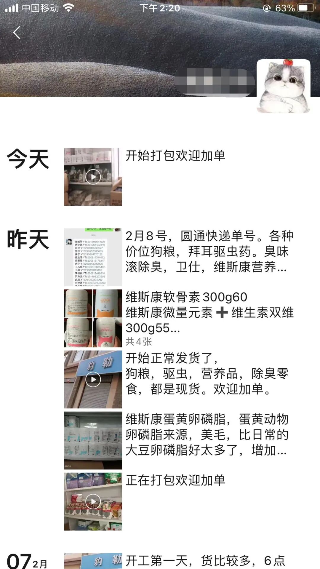 他在朋友圈里每天发各种产品:猫粮、猫砂、猫屋、猫玩具、驱虫药、营养品、除臭零食、卵磷脂、维生素......